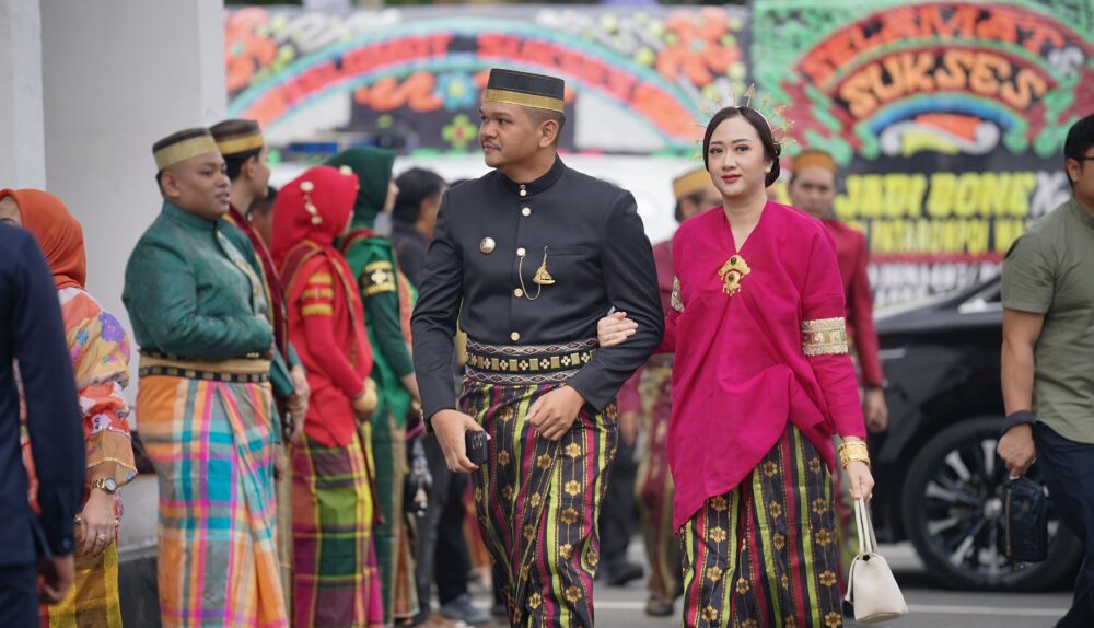 BONE – Bupati Bantaeng, M. Fathul Fauzy Nurdin bersama Ketua Tim Penggerak PKK Gunya Paramasukhaputri, menghadiri peringatan Hari Jadi Bone ke-696 yang digelar di Rumah Jabatan