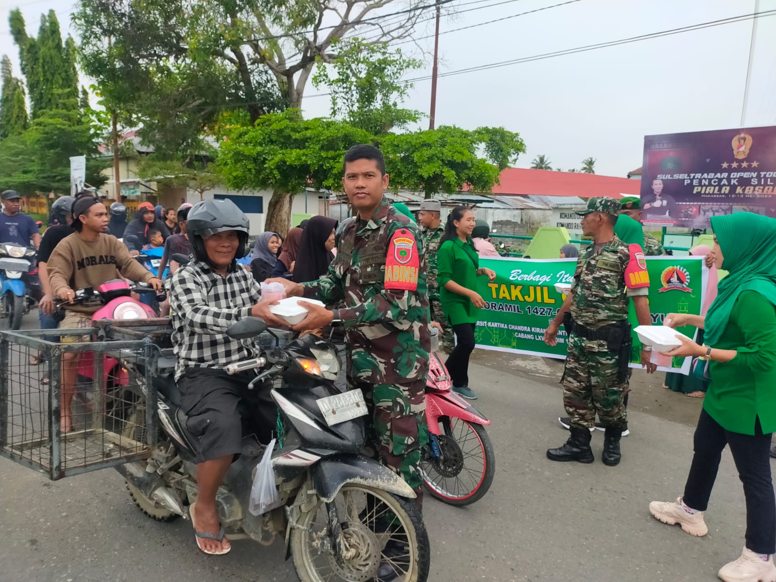 Pasangkayu-Sulbar /  Bulan Suci Ramadhan 1444 H Koramil 1427-01/Pasangkayu gelar aksi sosial dengan membagikan Takjil di depan Kantor Koramil ,Jln. Andi Deppu, Kelurahan. Pasangkayu Kecamatan. Pasangkayu. Jum’at (07/04/2023).