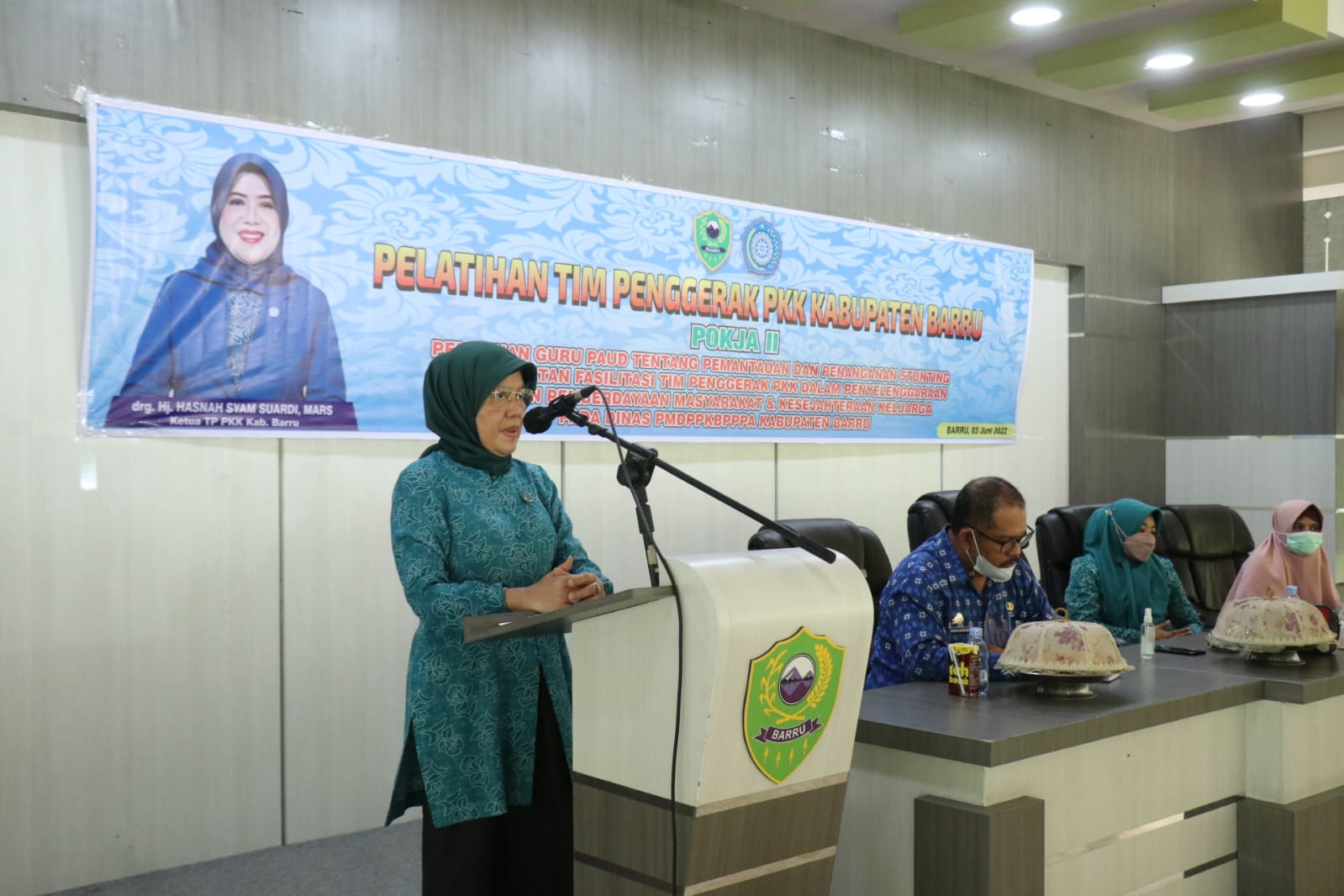 Legislator Nasional Hasnah Syam ini juga membuka kegiatan pelatihan TIM Penggerak PKK Kab. Barru Pokja II yaitu pelatihan bagi guru PAUD tentang Pemantauan dan Penanganan Stunting pada Kegiatan Fasilitasi TIM Penggerak PKK dalam Penyelenggaraan Gerakan Pemberdayaan Masyarakat dan Kesejahteraan Keluarga.