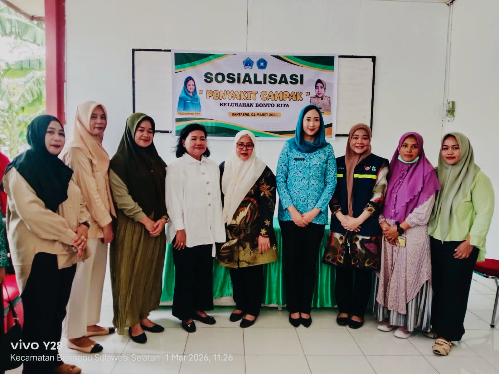 BANTAENG-, Tim Penggerak PKK Kabupaten Bantaeng menggelar kegiatan Sosialisasi Imunisasi dan Bahaya Penyakit Campak yang digelar di Kantor Lurah Bonto Rita, Kecamatan Bissappu, Minggu, 1 Maret 2026.
