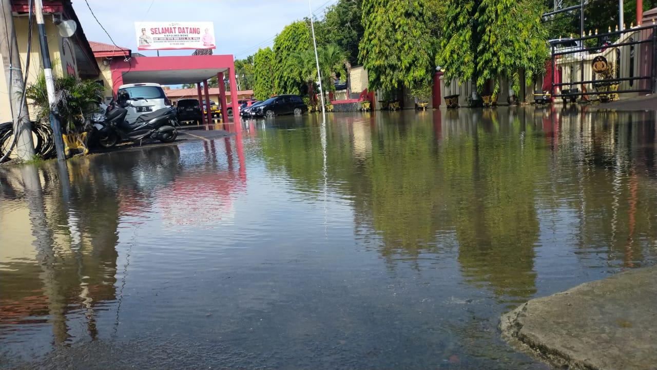 BONE — Hujan deras yang mengguyur Kabupaten Bone sejak Kamis dini hari (12/6/2025) memicu banjir di sejumlah titik. Tak terkecuali, Mapolres Bone ikut dilanda banjir dengan ketinggian air mencapai di atas mata kaki orang dewasa.