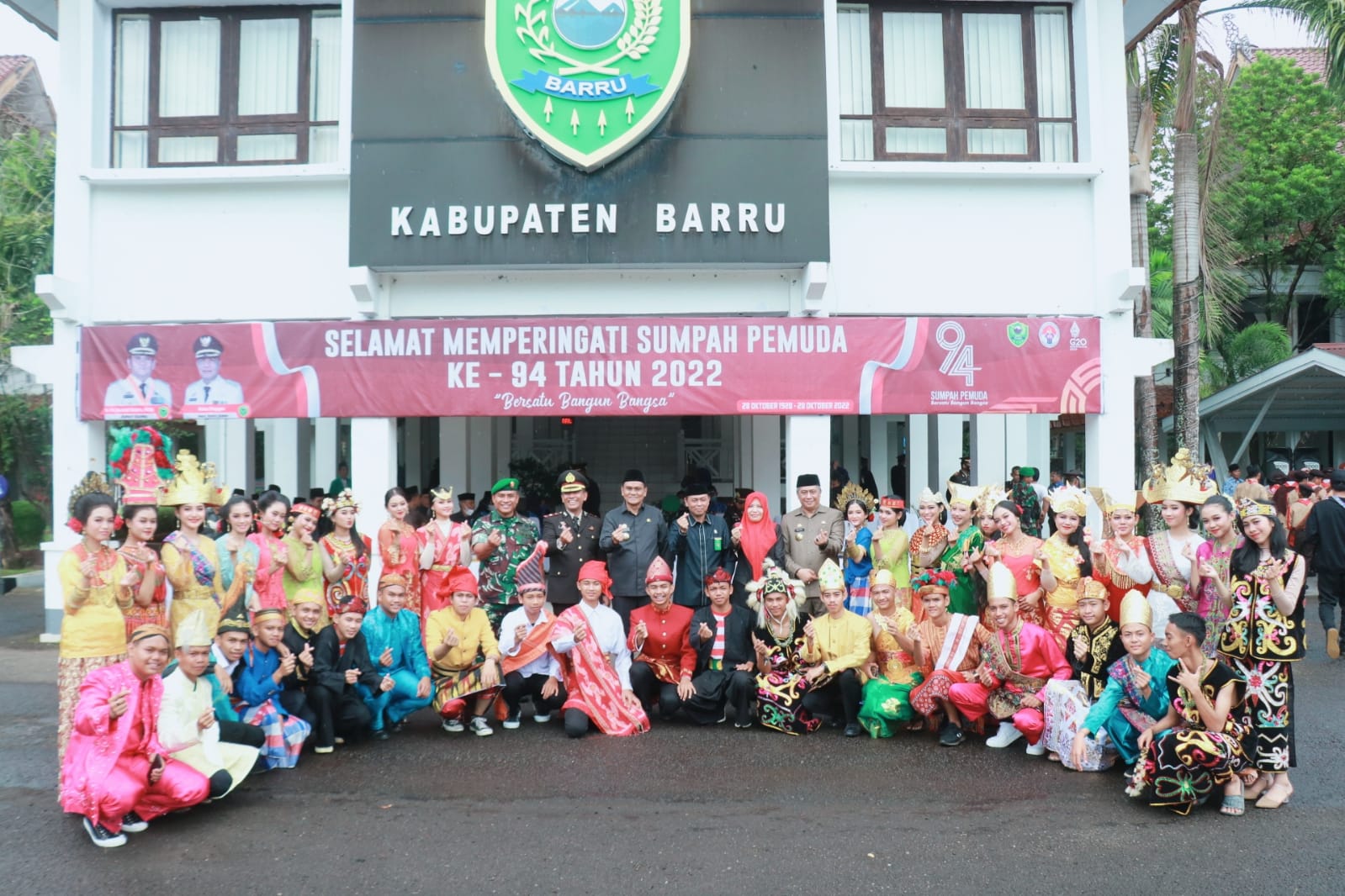 Barru – Pada Upacara Hari Sumpah Pemuda, turut hadir unsur Forkopimda, Sekretaris Daerah, Kepala OPD, OKP/Ormas se Kabupaten Barru