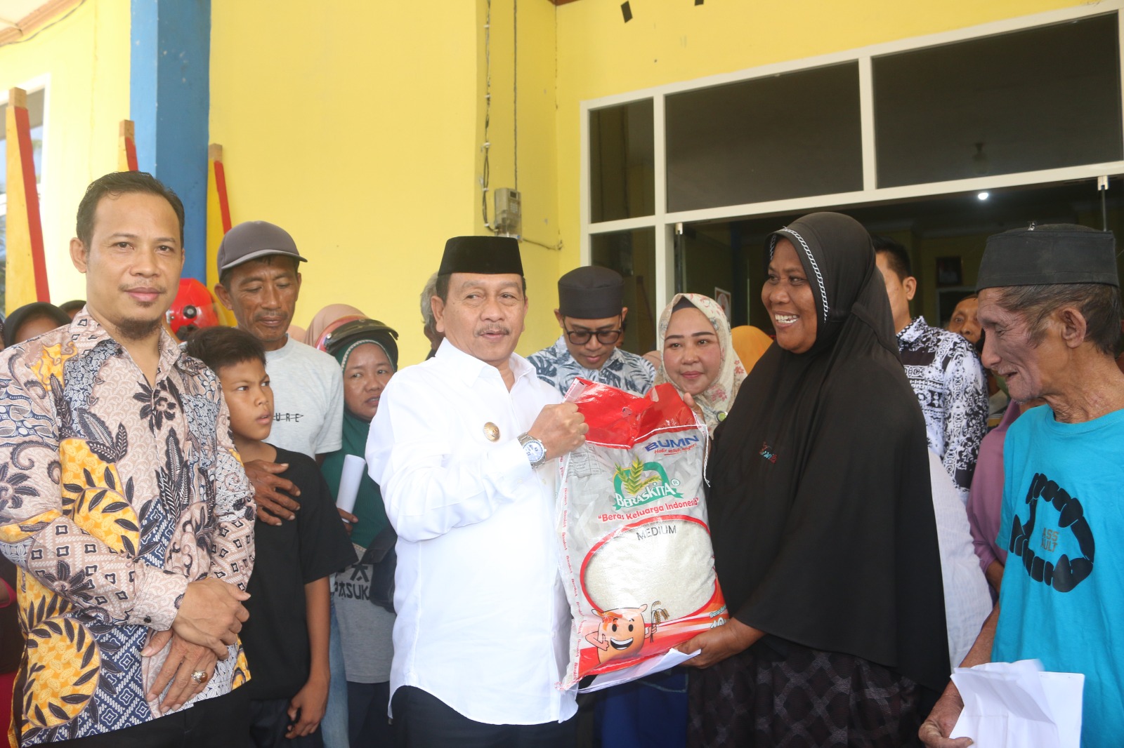 Bupati di dampingi Kadis Sosial Serahkan Bantuan 8622 Sak Beras Secara Simbolis Pada Penerima KPM, PKH
