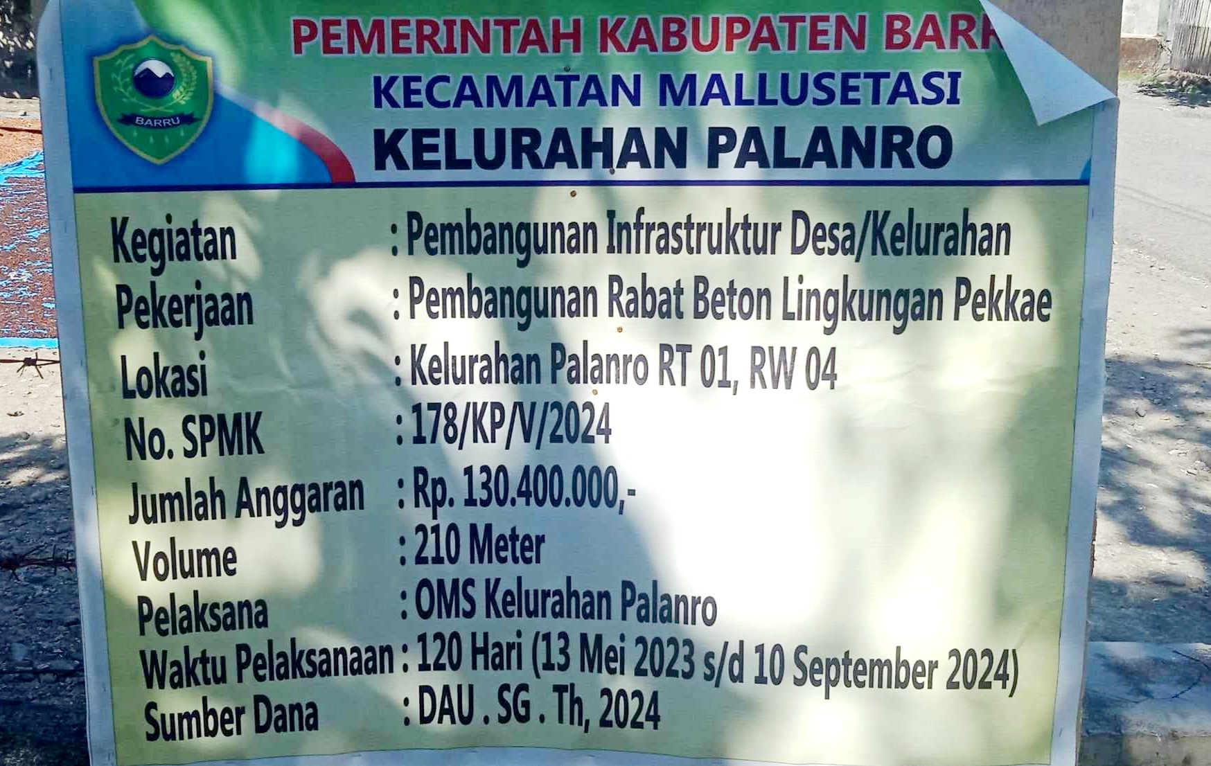Ketidaksesuaian ini menimbulkan pertanyaan terkait pengawasan dan pelaksanaan proyek yang menggunakan Dana DAU SG.2024