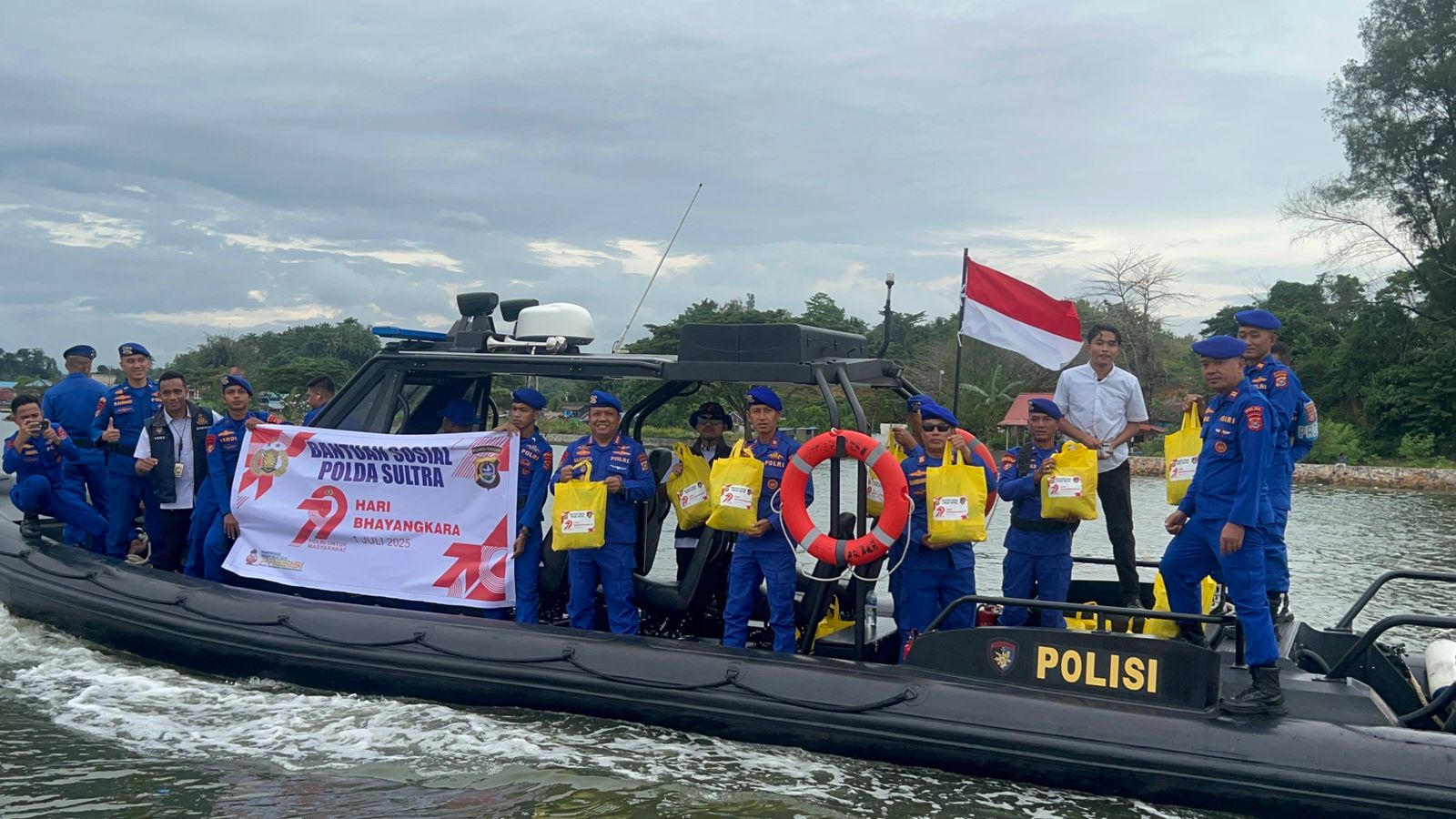 Kendari, 25 Juni 2025 – Direktorat Kepolisian Perairan dan Udara (Polairud) Polda Sulawesi Tenggara menunjukkan kepeduliannya terhadap masyarakat pesisir dengan menggelar kegiatan “bantuan sosial (bansos) kepada nelayan di perairan Teluk Kota Kendari”, Rabu (25/6), dalam rangka memperingati Hari Bhayangkara ke-79 Tahun 2025.