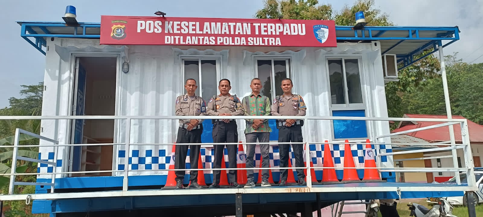 KONAWE — Direktorat Lalu Lintas Polda Sulawesi Tenggara mendirikan Pos Keselamatan Terpadu di Desa Pohara, Kecamatan Sampara, sebagai upaya meningkatkan pelayanan dan keselamatan berlalu lintas bagi masyarakat. Pos tersebut ditempatkan di pertigaan strategis Desa Pohara yang menghubungkan Kabupaten Konawe, Kabupaten Konawe Utara, dan Kota Kendari.
