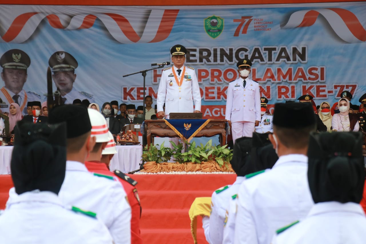 Barru-Tepat hari ini Indonesia merayakan ulang tahun ke-77. Upacara detik-detik proklamasi dipusatkan di Lapangan Sumpang Binangae Kecamatan Barru secara terbuka, Rabu, 17/8/2022.