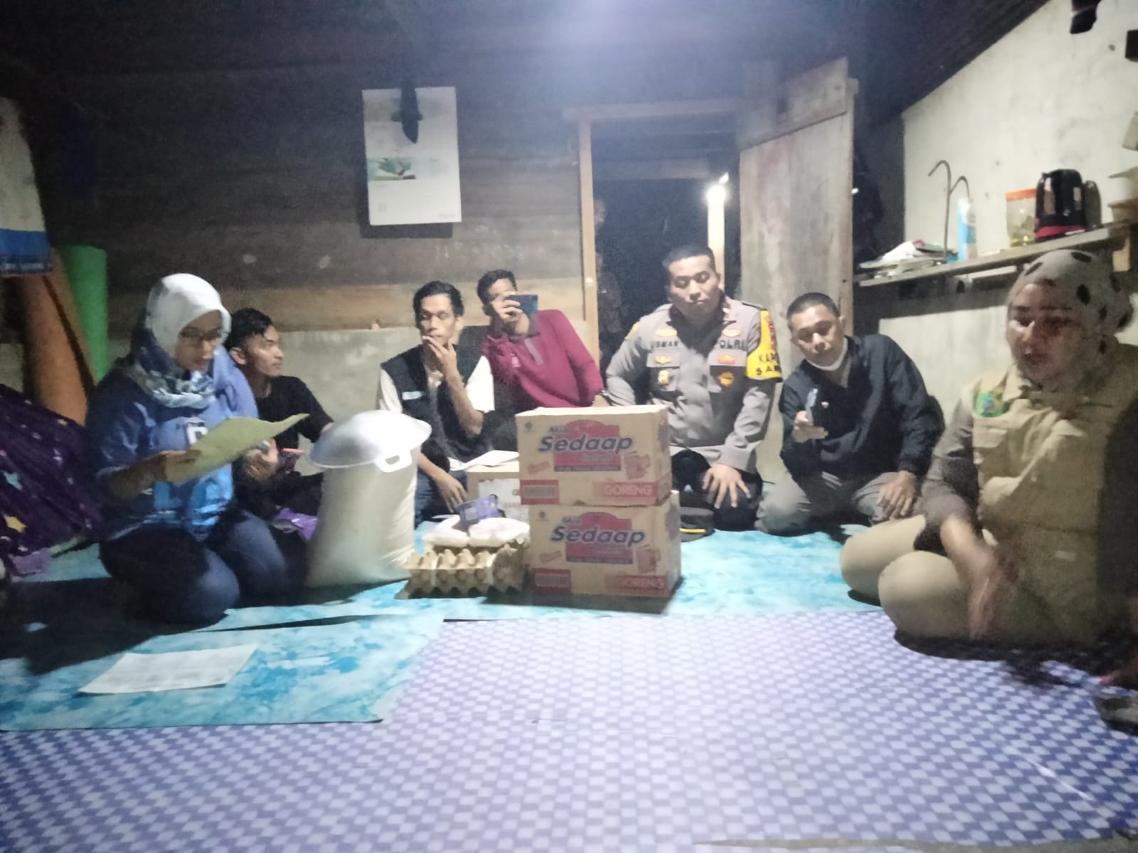 Kapolsek Sarudu Ipda Usman didampingi nyonya Arisa S.Sos pada saat menyerahkan bantuan sembako, kepada keluarga Rusli didusun masabo, desa benggaulu, kecamatan dapurang.
