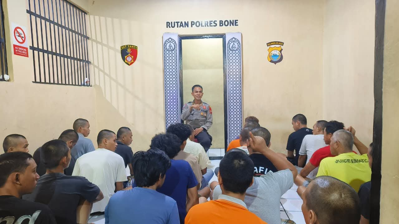 KBO Sat Binmas Polres Bone Berikan Ceramah dan Motivasi kepada Tahanan