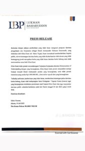 “Terhadap perbuatan pemberitaan yang tidak benar, memberikan keterangan palsu dan/atau berita bohong, Kami telah melayangkan Surat Peringatan/ Teguran Keras (Somasi) agar yang bersangkutan melakukan permintan maaf kepada Klien Kami dan juga masyarakat dan/atau publik selambat-lambatnya pada hari Kamis tanggal 20 Juli 2023 pukul 16.00 WIB,” tulisnya.