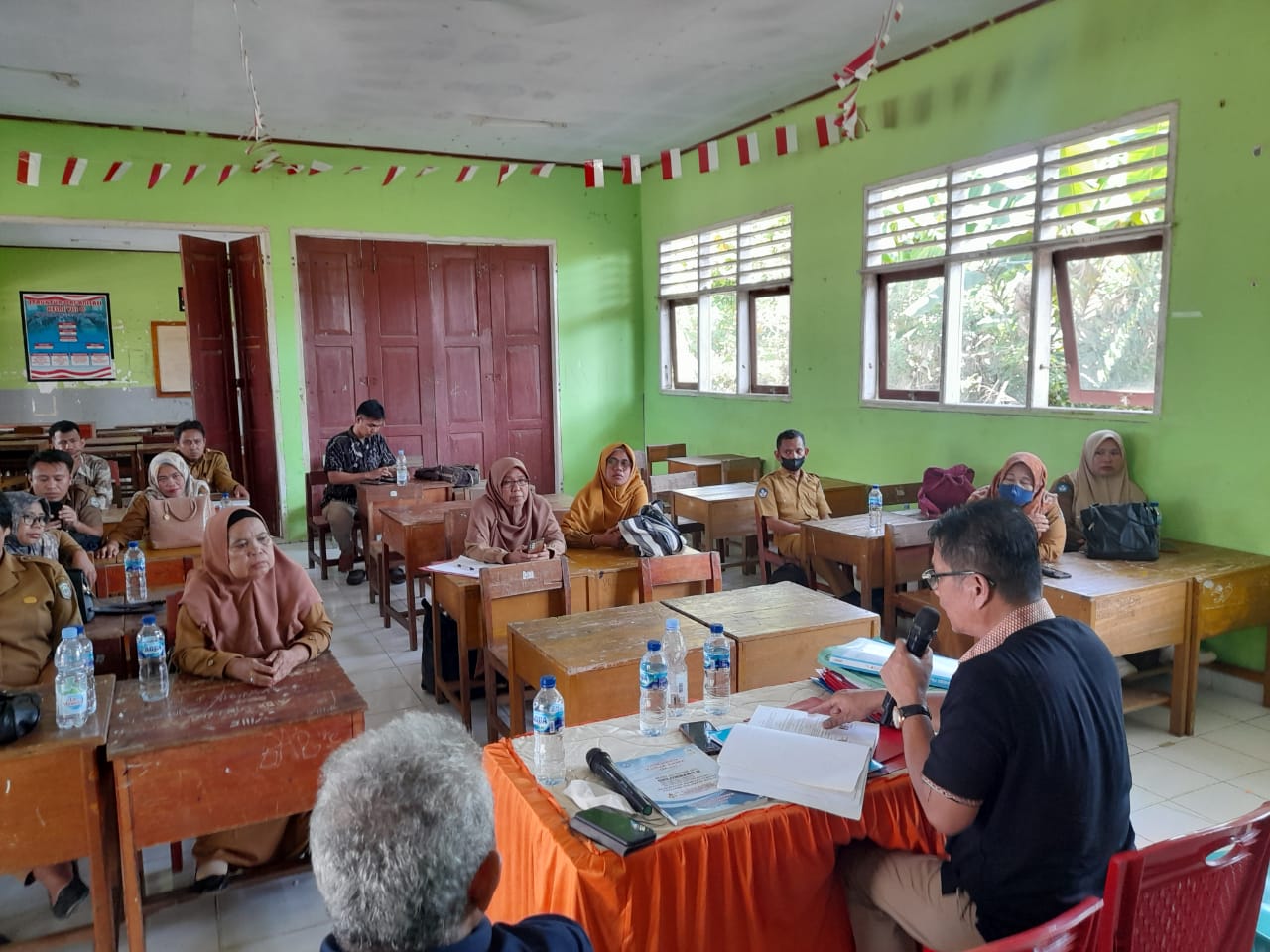 Rapat tersebut berlangsung di salah satu ruangan kelas SMP 6 Topoyo, Kabupaten Mamuju Tengah, Senin, (28 Agustus 2023).