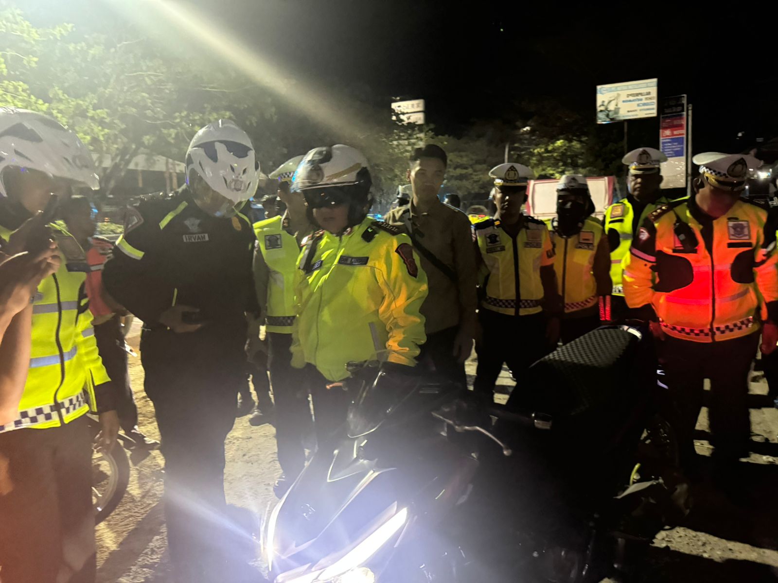 “Malam ini kami melaksanakan patroli skala besar bersama rekan-rekan dari TNI dan Dishub untuk mengantisipasi adanya pelanggaran, khususnya yang berkaitan dengan balap liar dan penggunaan knalpot brong,” ujarnya.