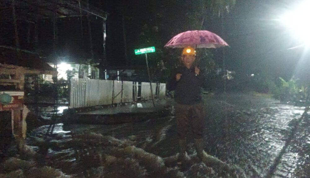 Respon Cepat Cuaca Ekstrem, Kapolsek Pujananting Turun ke Jalan Pantau Luapan Air Drainase di Mattappawalie