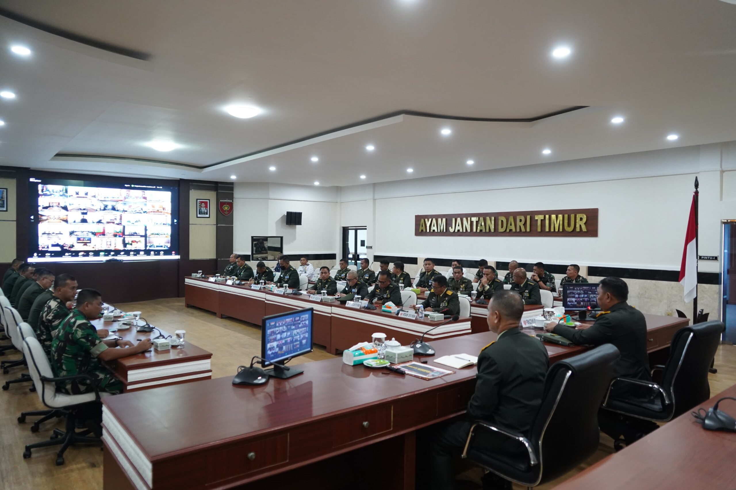 Makassar – Pangdam XIV/Hasanuddin, Mayjen TNI Bobby Rinal Makmun, S.I.P, memberikan pengarahan kepada seluruh Pejabat Utama (PJU) Kodam, Kepala Badan Pelaksana Kodam (Kabalakdam) dan para Komandan Satuan (Dansat) jajaran Kodam XIV/Hasanuddin, baik secara offline maupun virtual, terpusat di Ruang Bina Yudha Makodam Jl. Urip Sumoharjo Kota Makassar, Minggu, (10/11/2024)