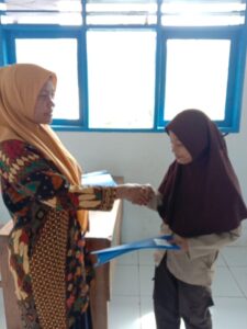 Selanjutnya sebelum menyerahkan Raport, Halipah memberikan ultimatum kepada Siswa-siswi, “kalian Harus Rajin supaya ke depan bisa lulus ujian dengan nilai yang memuaskan.