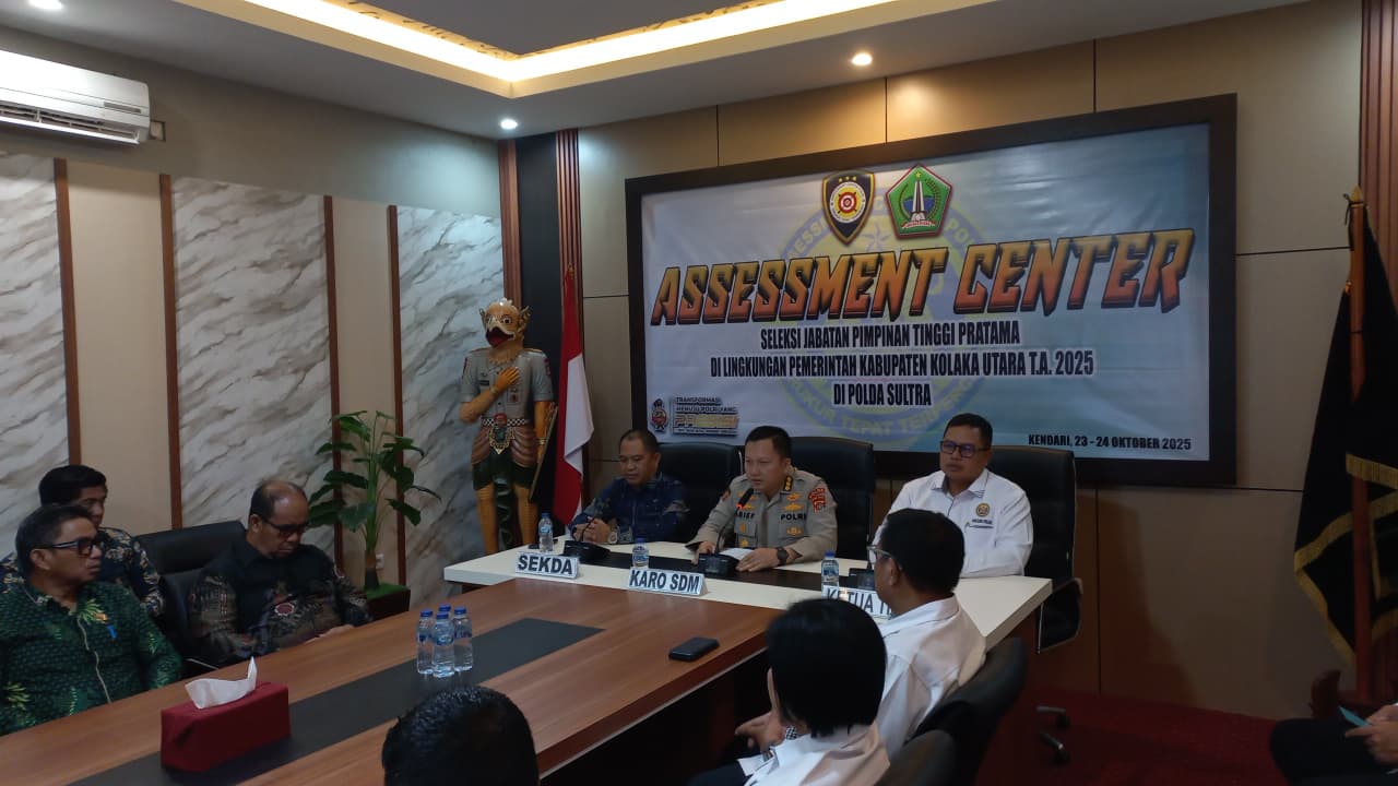 Kendari, 23 Oktober 2025 – Biro Sumber Daya Manusia (SDM) Polda Sulawesi Tenggara (Sultra) menyelenggarakan kegiatan Assessment Center bagi pejabat Pimpinan Tinggi Pratama Pemerintah Kabupaten (Pemkab) Kolaka Utara Tahun 2025. Kegiatan berlangsung di Ruang Assessment Center Biro SDM Polda Sultra, Kamis (23/10/2025).