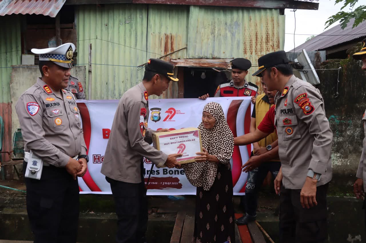 BONE – Dalam rangka memperingati Hari Bhayangkara ke-79, Polres Bone menggelar kegiatan bakti sosial sebagai bentuk kepedulian dan pengabdian kepada masyarakat, khususnya keluarga kurang mampu di wilayah Kabupaten Bone.