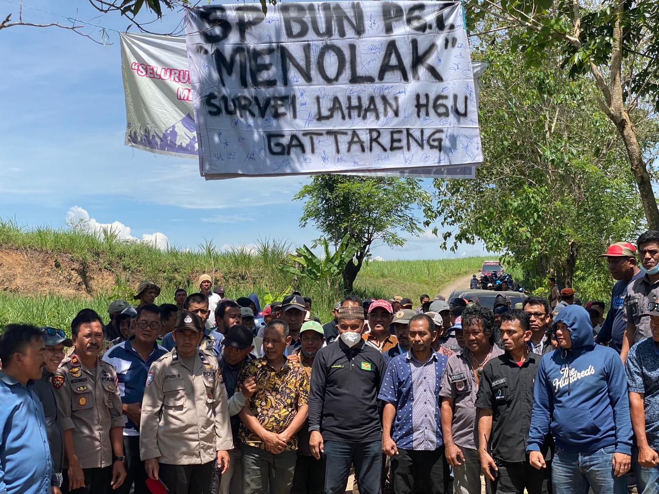 Dalam aksi penolakan survei lahan HGU PG Camming, kebun Gattareng, dikawal langsung oleh Kapolsek Salomekko bersama dua orang anggotanya.{Am)/LN