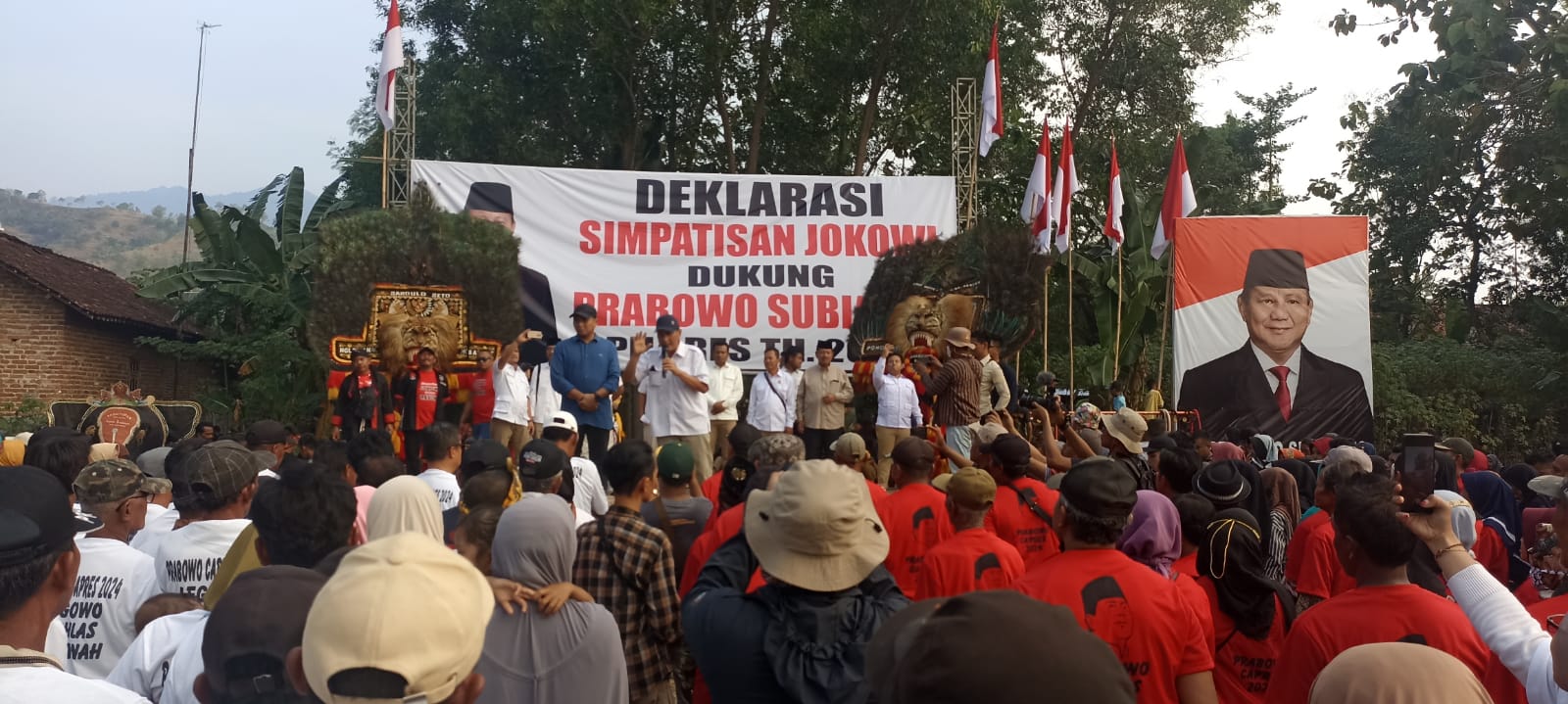PONOROGO – Diluar dugaan Ribuan simpatisan Jokowi dari seluruh penjuru Bumi Reyog memadati Lapangan Desa Nglewan, Kecamatan Sambit, Kabupaten Ponorogo, Jatim, Senin (19/6/2023) untuk mendeklarasikan mendukung Prabowo dalam Pilpres 2024.