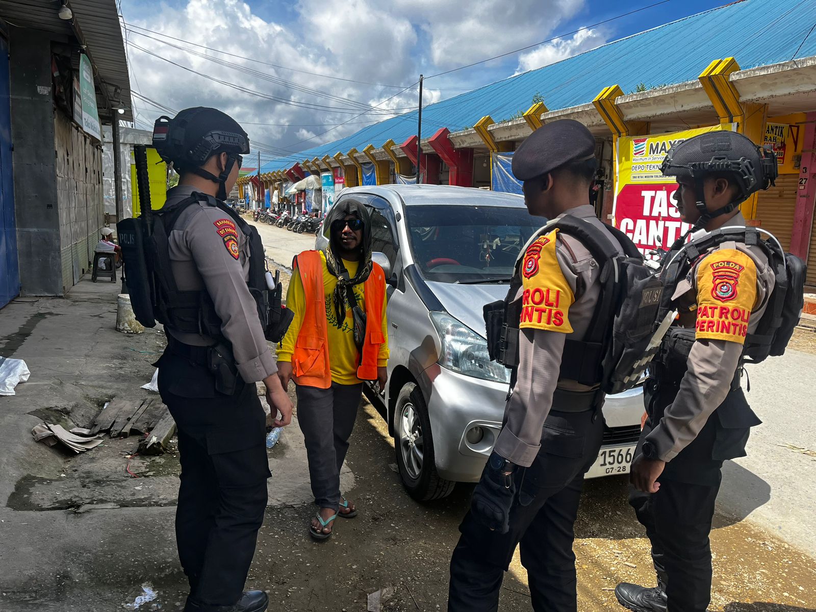 Pada kegiatan kedua yang berlangsung pukul 14.00 WITA di kawasan Pasar Baruga, Satgas Preventif melakukan monitoring terhadap aktivitas parkir di lokasi tersebut. Dalam pemeriksaan, seorang juru parkir berinisial MU (45) diketahui telah bekerja sama dengan pengurus pasar dan memiliki surat izin resmi dari Pemerintah Daerah untuk mengelola parkiran. “Kami memberikan imbauan agar tidak melakukan pungutan liar, tidak memaksakan tarif parkir kepada pengunjung, serta mengingatkan untuk tidak membawa senjata tajam saat bertugas,” kata Kasatgas Preventif Ipda Arief Rahman, S.H. Pendataan dan pembinaan juga dilakukan di lokasi kejadian.