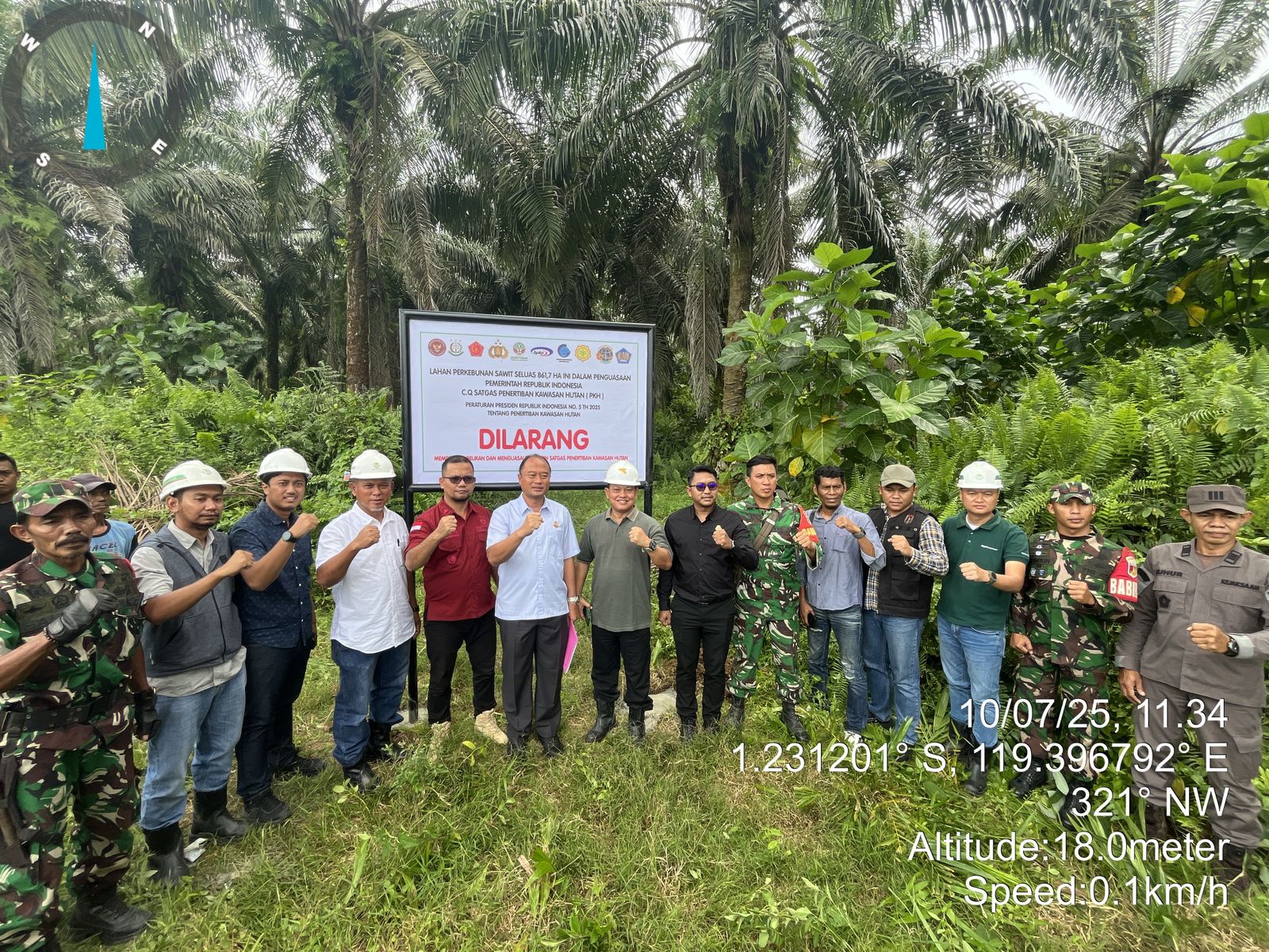 Pasangkayu- Tim Satuan Tugas Penertiban Kawasan Hutan (Satgas PKH/Satgas Sawit) melakukan pemasangan papan plang penertiban di lokasi perkebunan milik PT Pasangkayu di Afdeling Bravo 13, Kamis (10/7/2025).