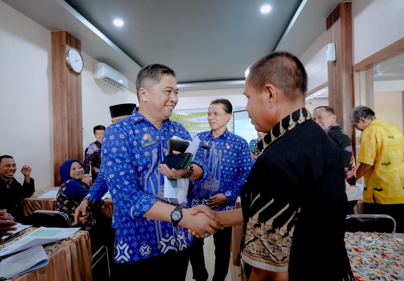 Barru // Sekda Barru DR Abustan AB,M.Si setelah mendampingi Bupati Barru Dalam Rakor Webinar bersama BUMD kemudian dengan senyum khasnya memimpin Rapat Koordinasi (Rakor) Sosialisasi Rekomendasi Perlindungan Lahan Pertanian Pangan Berkelanjutan (RP LP2B) yang di laksanakan di Cafe Fadhil.