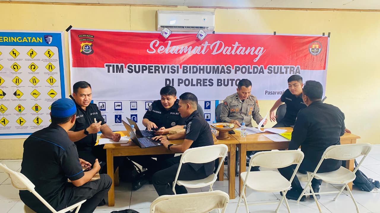 Kapolres Buton, AKBP Ali Rais Ndraha, S.H.,S.I.K.,M.M.,Tr melalui Wakapolres Buton, Kompol Yulianus menerima kunjungan tim supervisi dari Bidang Hubungan Masyarakat (Bidhumas) Polda Sultra. 27/08/25